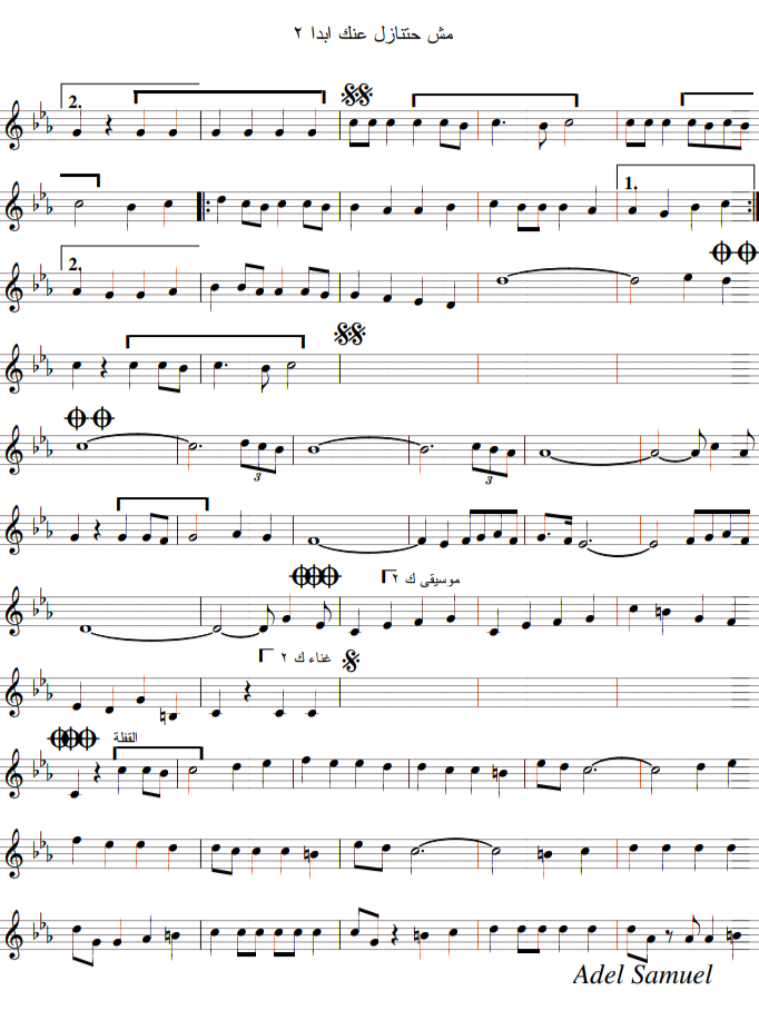 نـــوته مـــوسيقيه ســـميرة ســـعيد مـــش هـــتنازل عـــنك مـــع كـــلمات اغـــنيه كـــامله تـــدوين ا عـــادل صـــاموئيل
