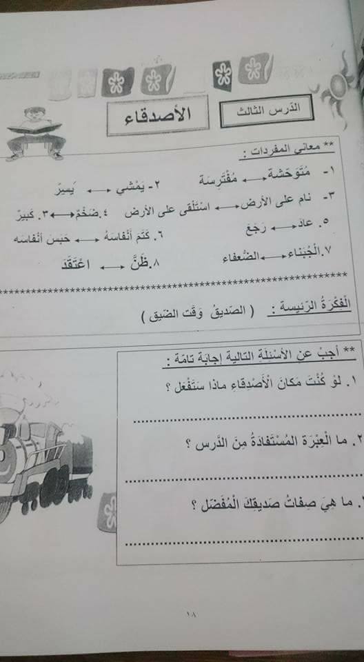 درس الأصدقاء أفكار ومعاني الدرس وشرح المثنى والضمائر لمادة اللغة العربية للصف الثالث الفصل الأول منتديات صقر الجنوب