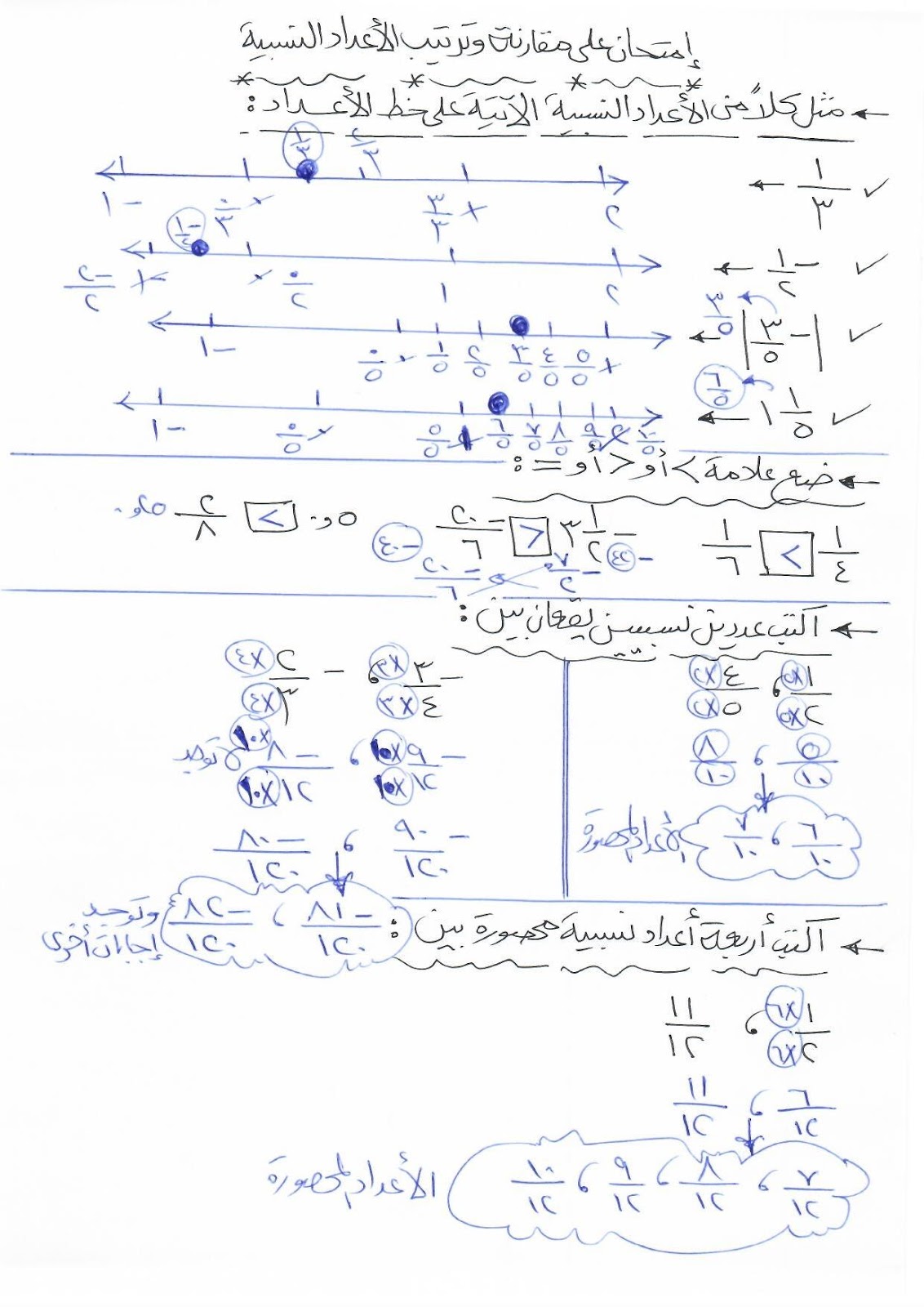 امتحان مقارنة وترتيب الاعداد النسبية اولي اعدادي جبر مدونة ميس سلوى حامد