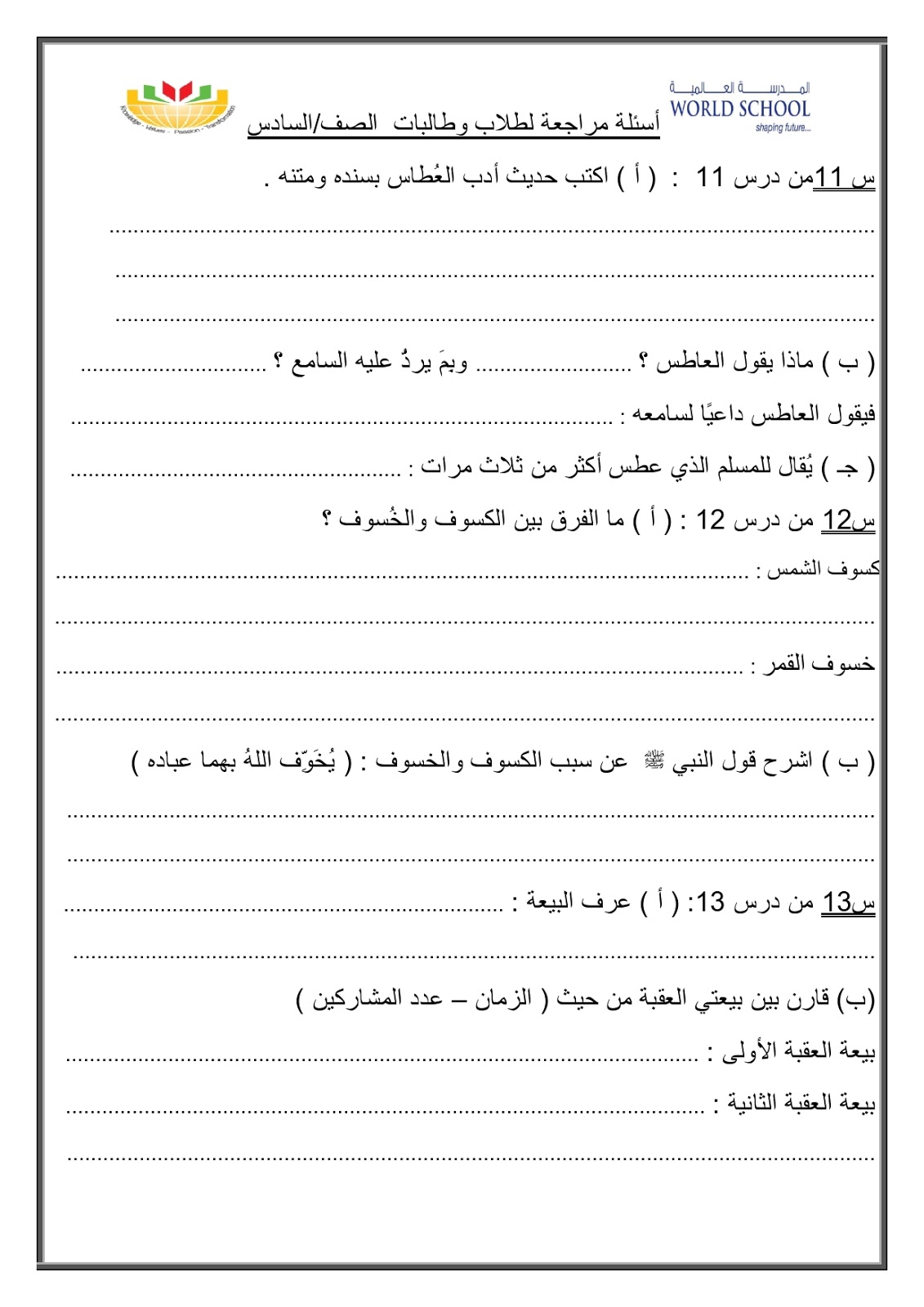 World School Oman Homework For Grade 6 As On 06 04 2020