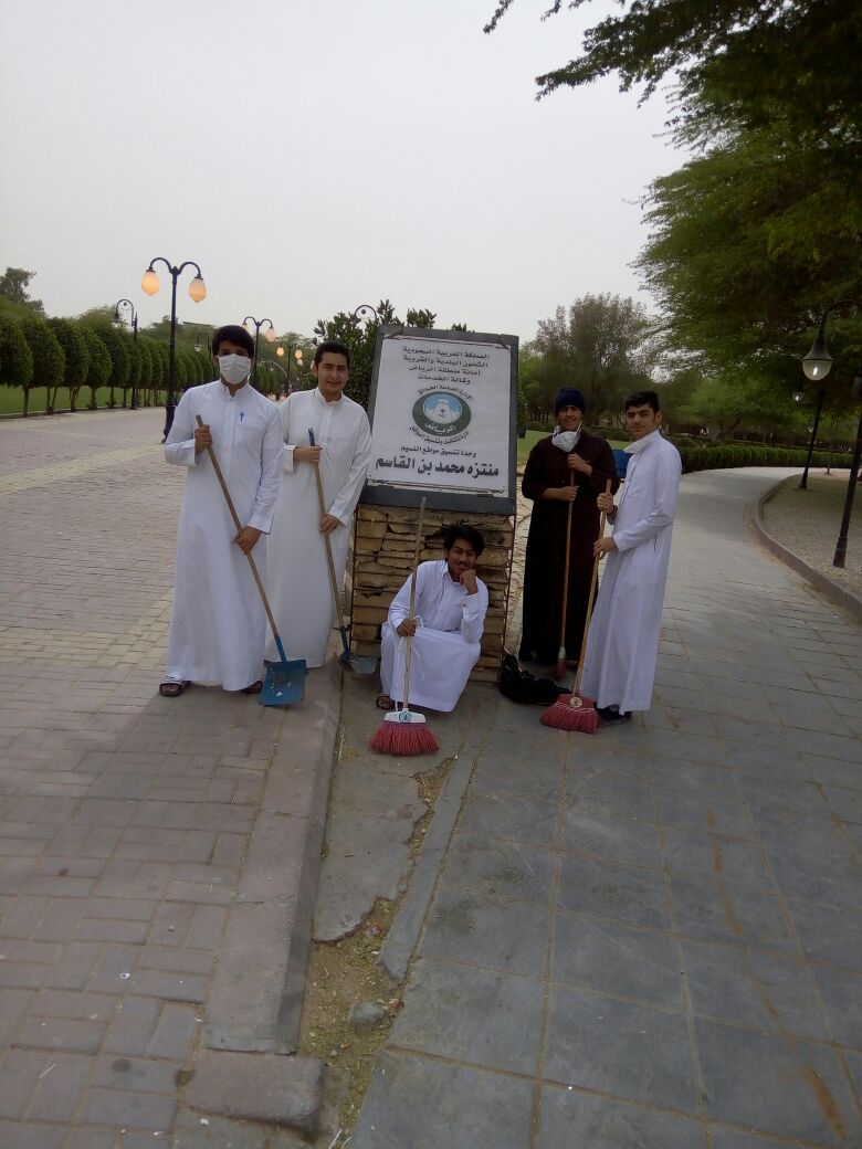 الثانوية بنين الريان فريق العمل التطوعي بثانوية التربية بالريان يساعد عمال النظافة في تنظيف حدائق الحي