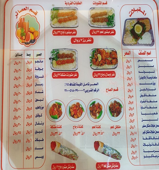 منيو مطعم مبشور الطائف وارقام التواصل واوقات العمل
