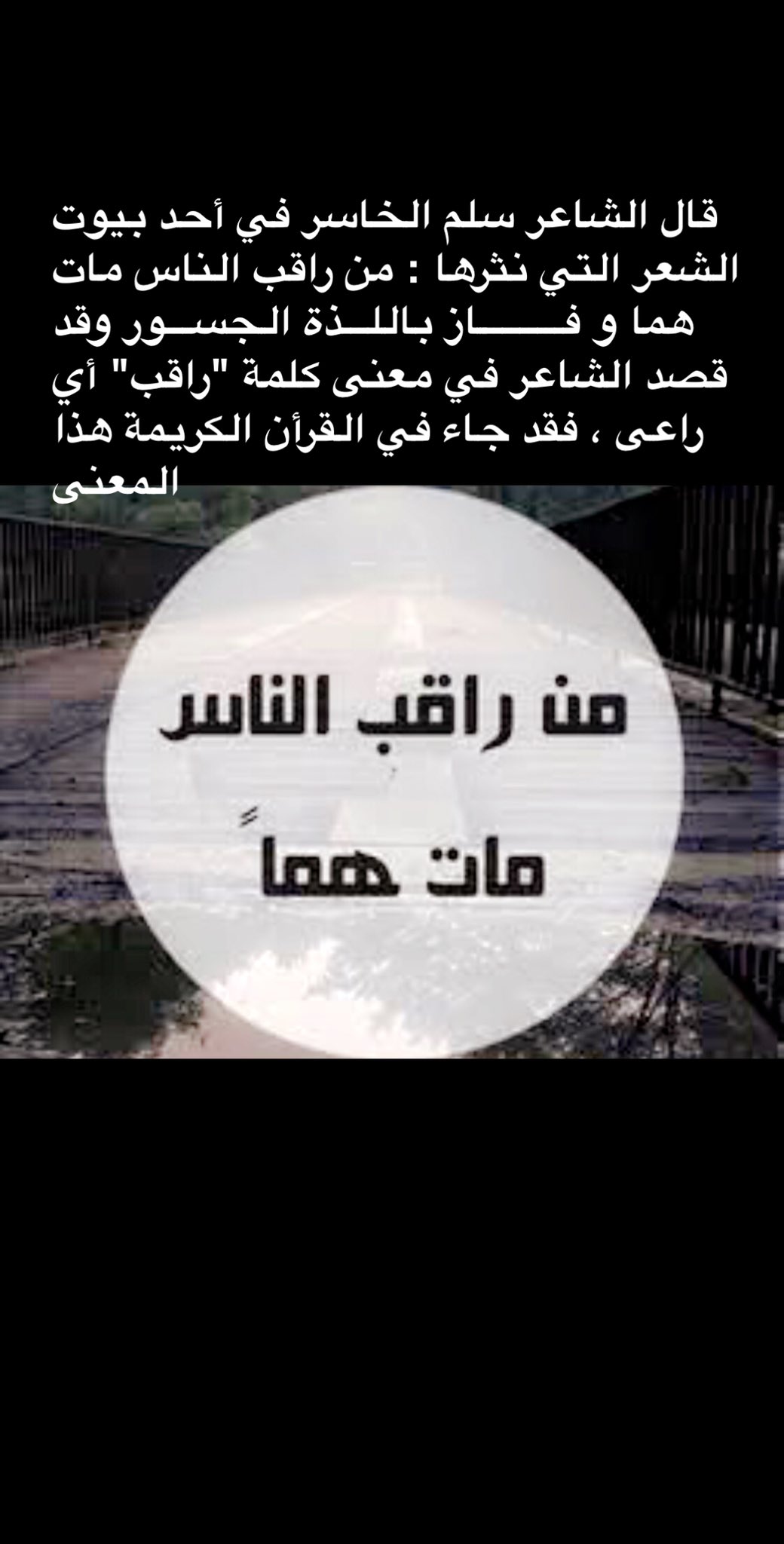 سلطان الهيلم On Twitter قال الشاعر سلم الخاسر في أحد بيوت الشعر التي نثرها من راقب الناس مات هما و فـــــــــاز باللـــذة الجســـور وقد قصد الشاعر في معنى كلمة راقب أي