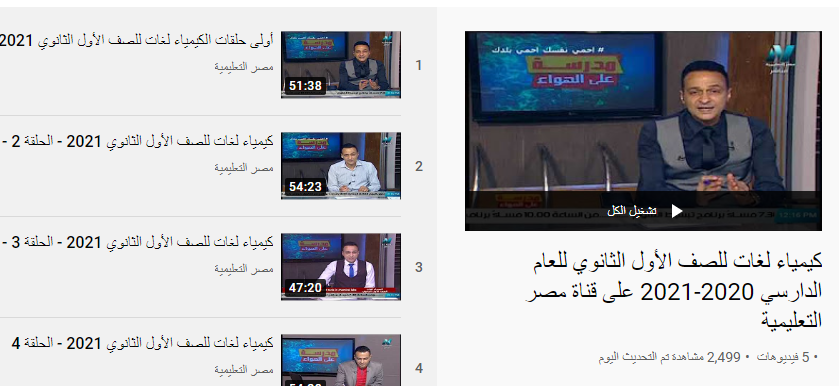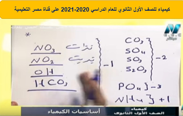 كيمياء للصف الأول الثانوي للعام الدارسي 2020 2021 على قناة مصر التعليمية