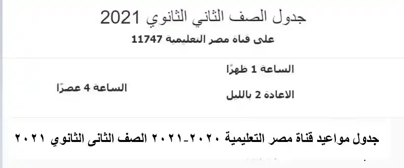 مواعيد قناة مصر التعليمية 2021 للصف الاول الثانوى