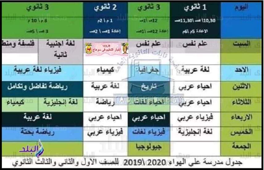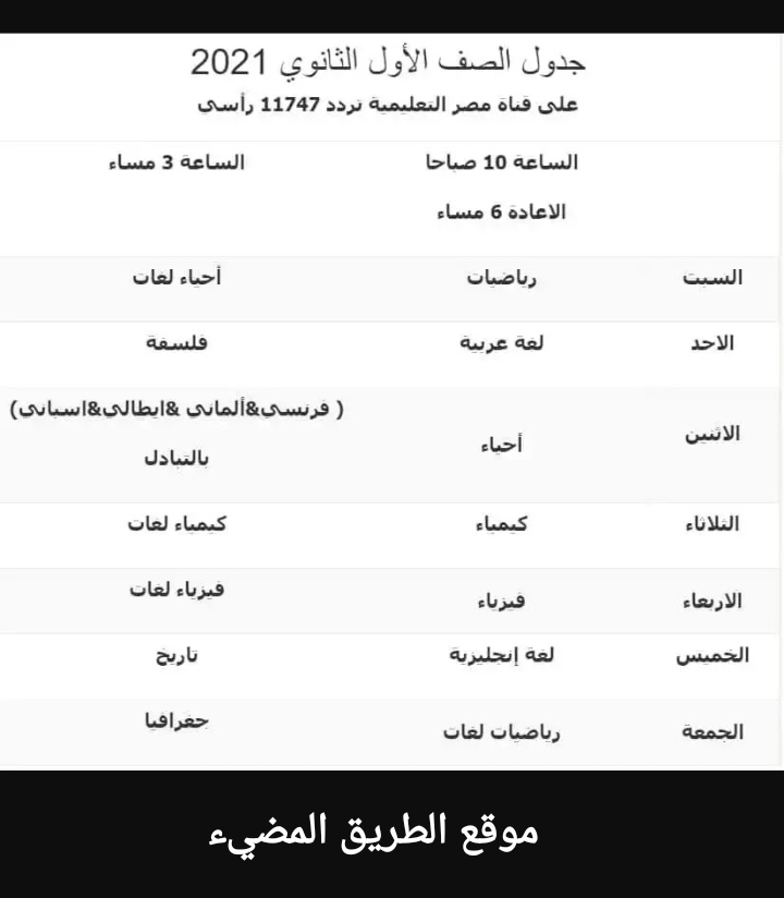 صور جدول مواعيد قناة مصر التعليمية 2020 للصف الأول الثانوي يوميا موقع بذاكر التعليمي