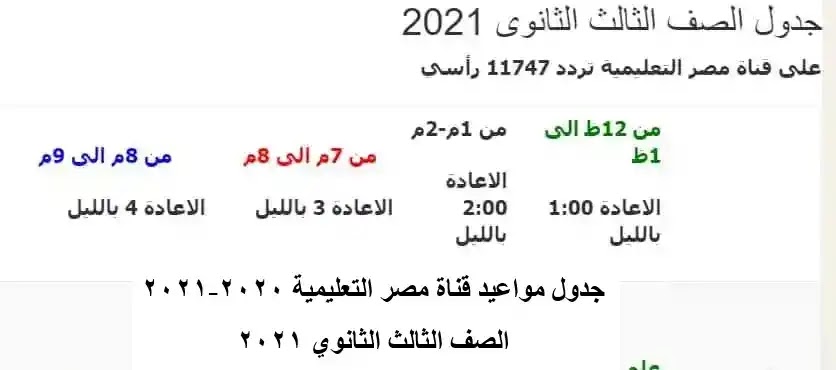 جداول برامج قناة مصر التعليمية لجميع المراحل على النايل سات عبر تردد 11747 رأسي