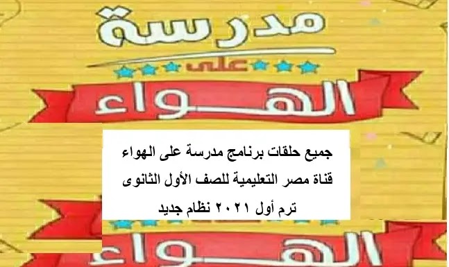 جميع حلقات برنامج مدرسة على الهواء قناة مصر التعليمية للصف الأول الثانوى ترم أول 2021 نظام جديد
